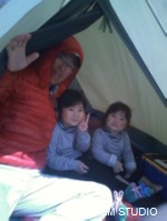 明日の荒天予報に備えて港の一番奥にテントを張る。